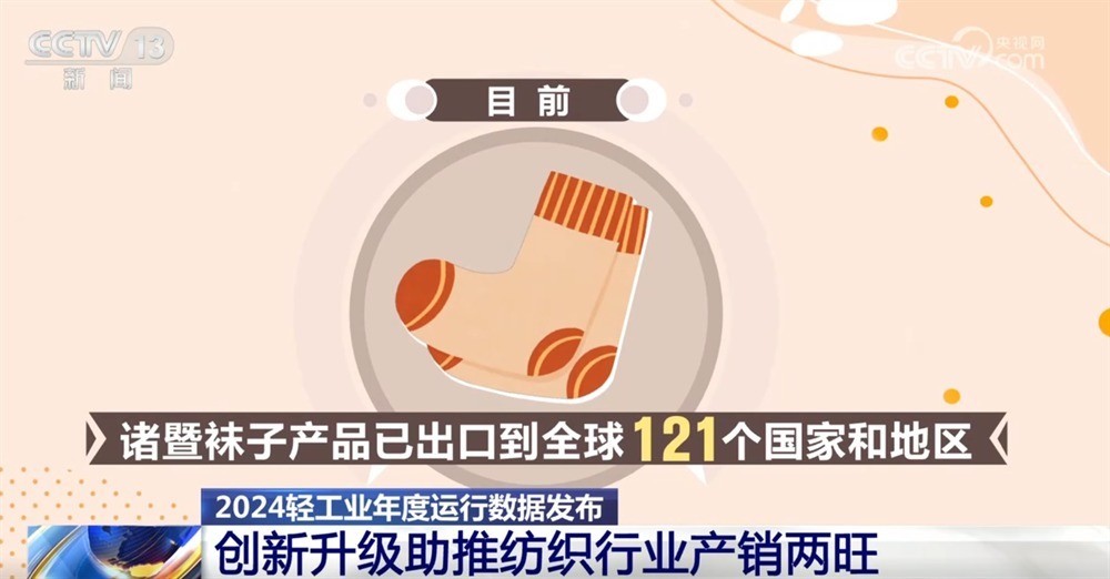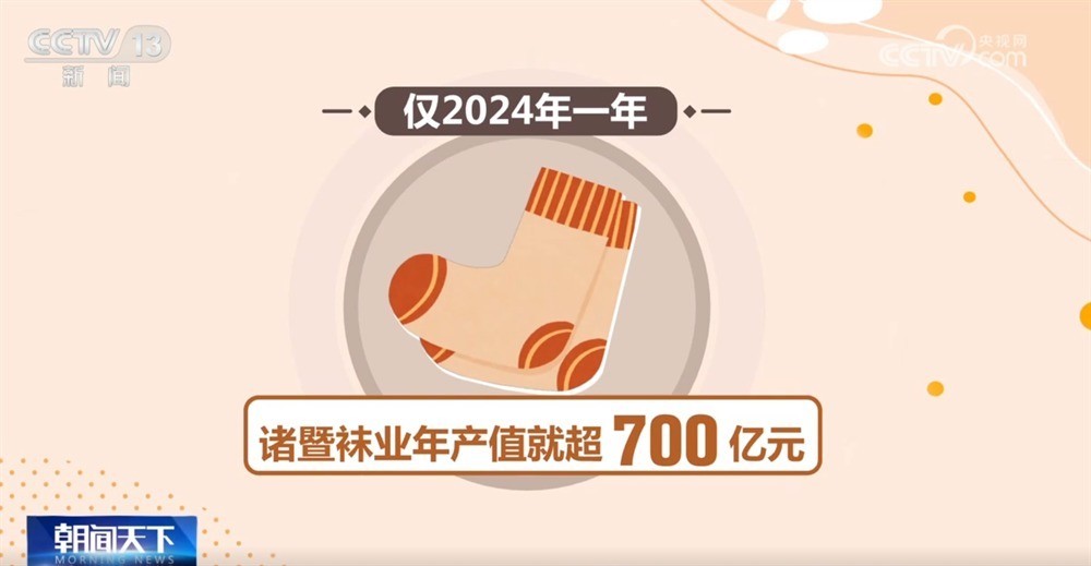 当地在新设备、新材料、新工艺上不断创新,为袜品功能、穿戴场景等多元化提供了更多选择。目前,产品已出口到全球121个国家和地区,仅2024年一年,袜业年产值就超700亿元。